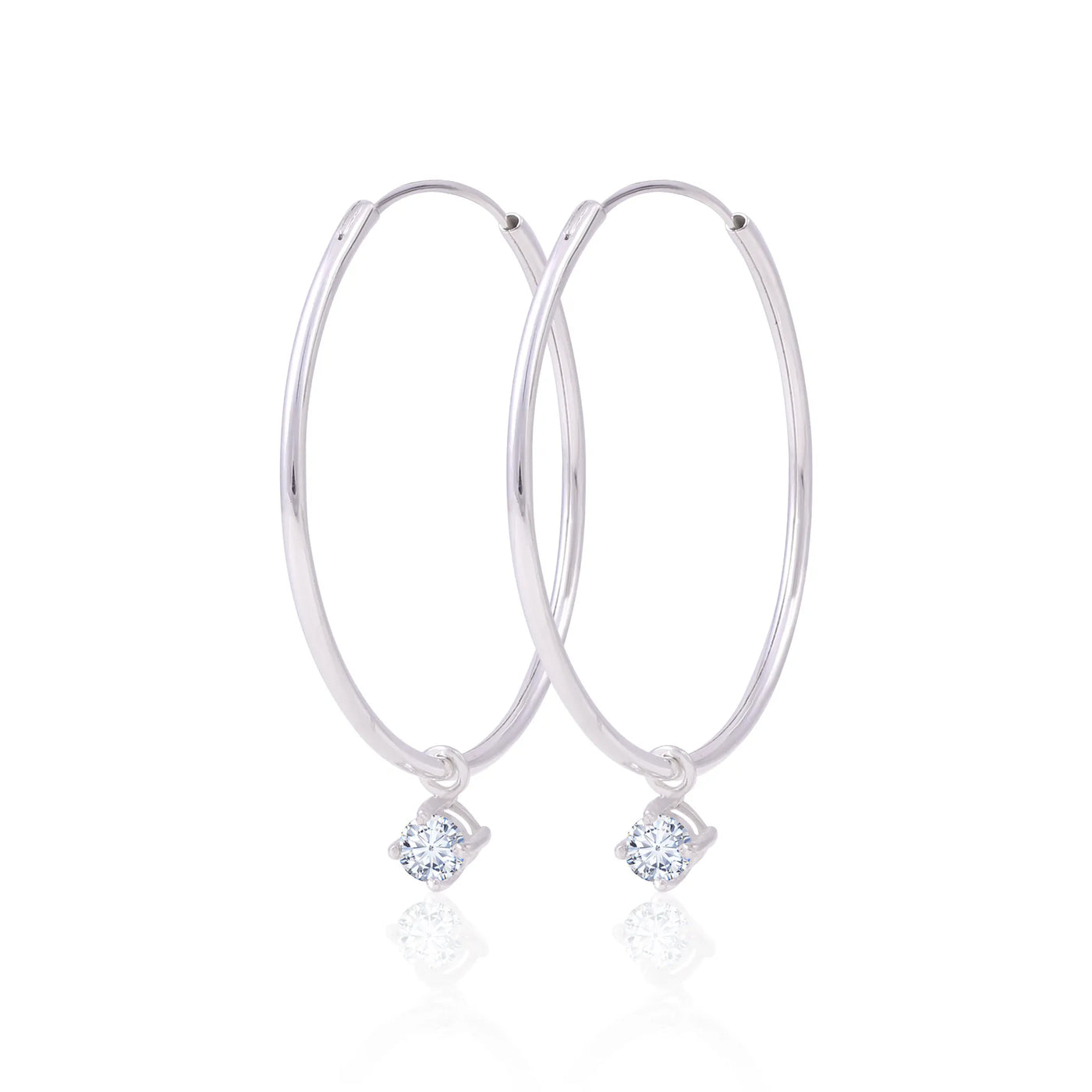 Effortlessly refined, Celeste Hoops blend classic charm with modern minimalism. These slender sterling silver hoops feature a single sparkling gemstone charm that dangles gracefully, catching the light with every move. Lightweight and versatile, they transition seamlessly from day to night - adding a hint of brilliance to any look.
